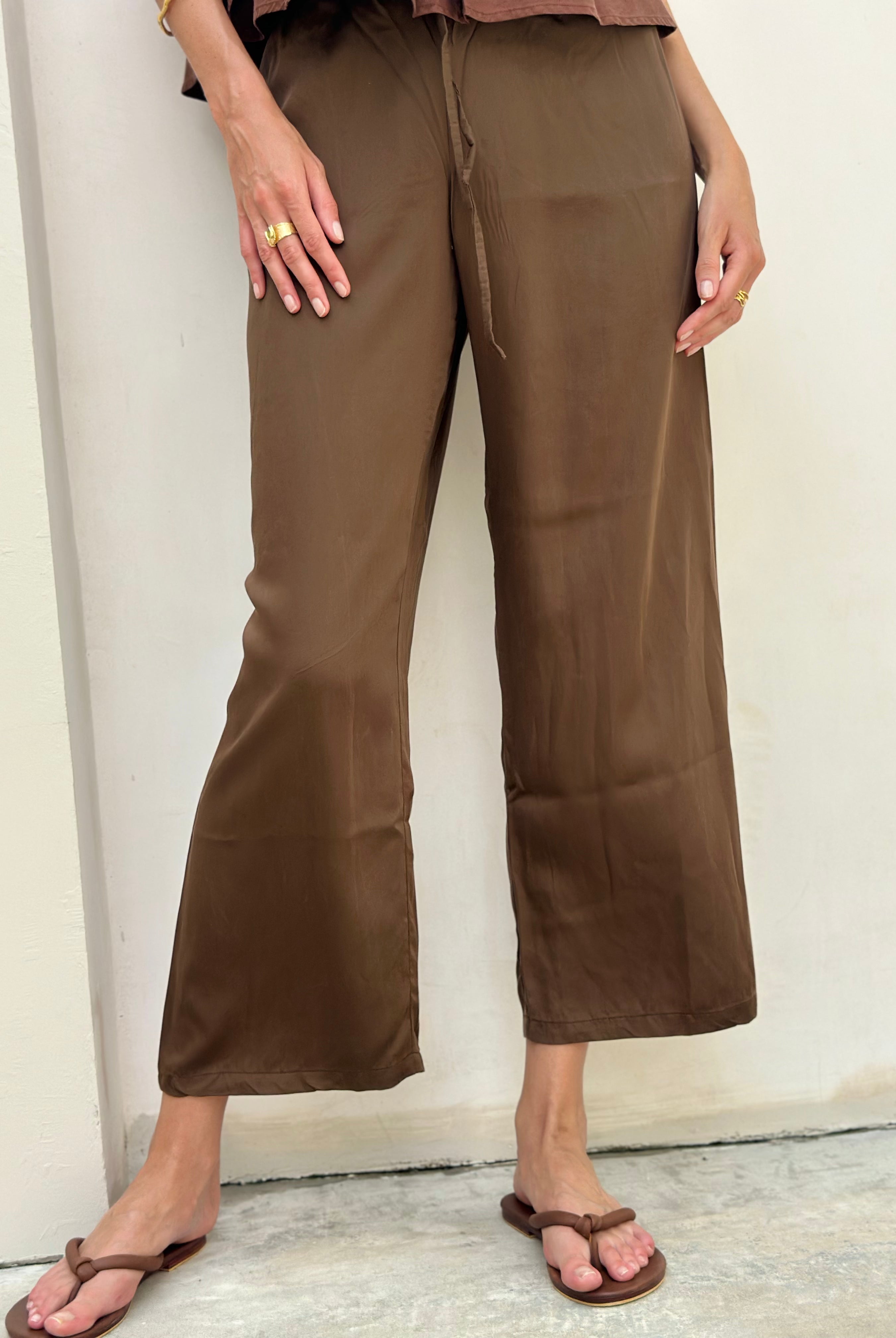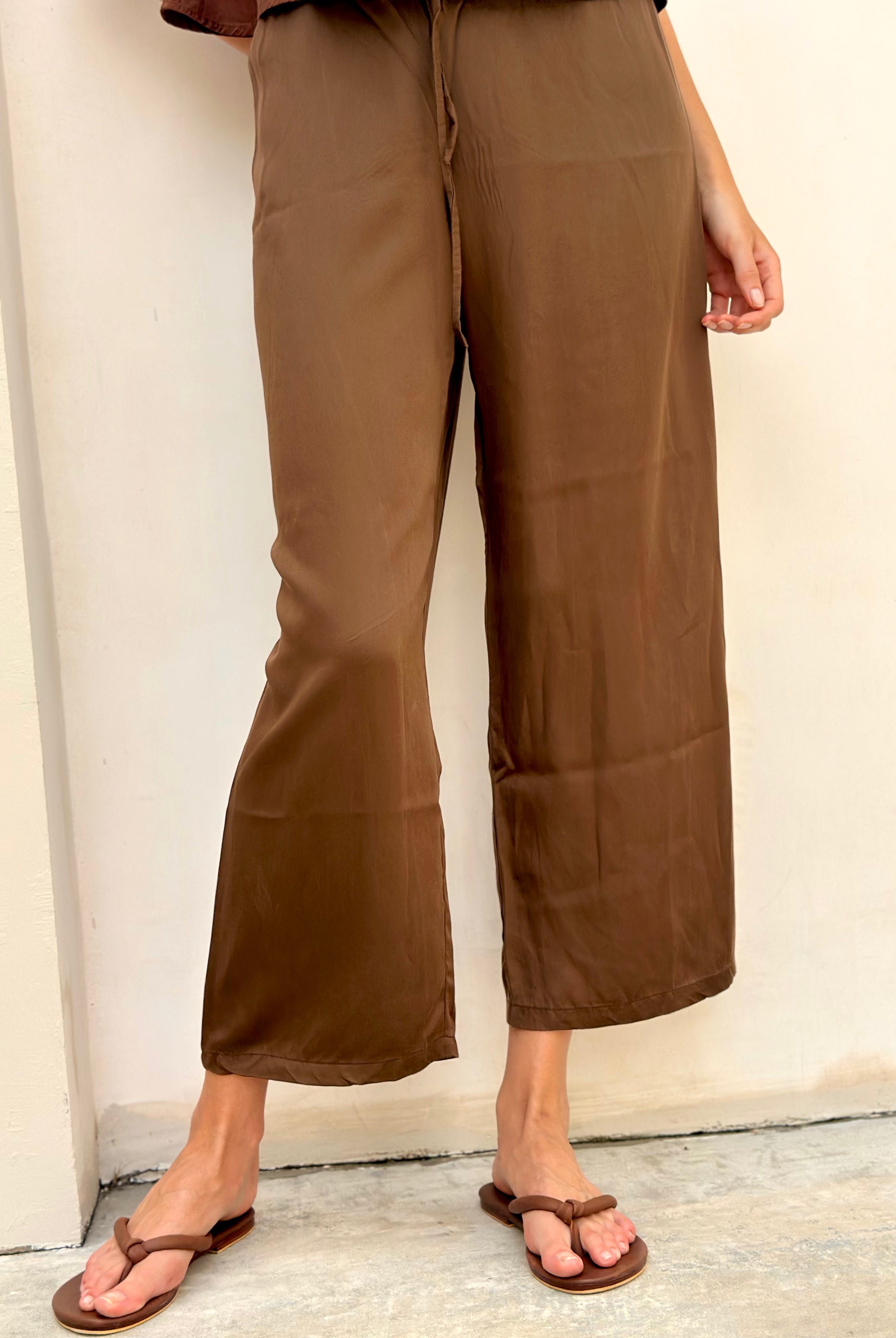 Jenny Chocolate Linen Wide Leg Pants