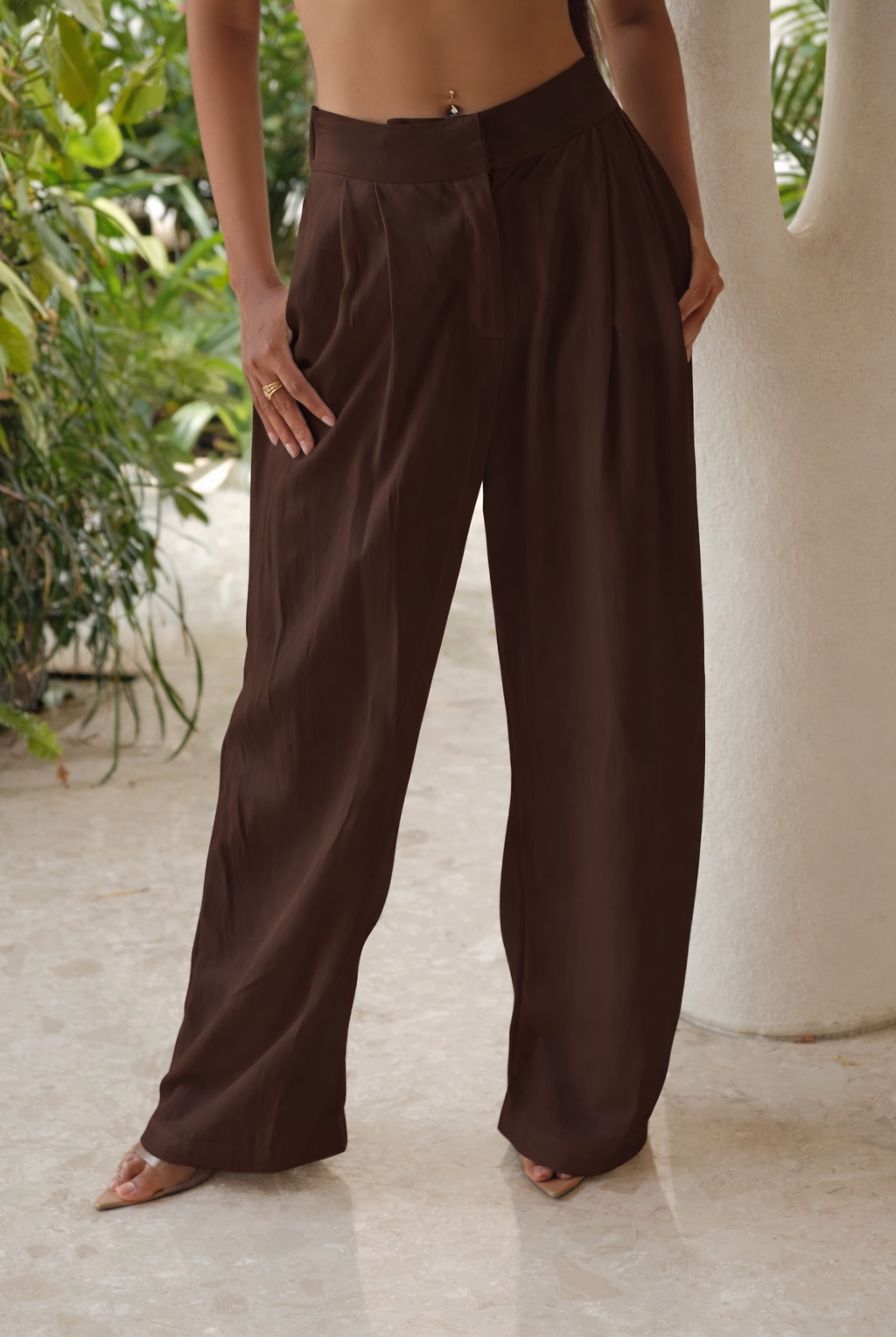 Jenny Chocolate Linen Wide Leg Pants