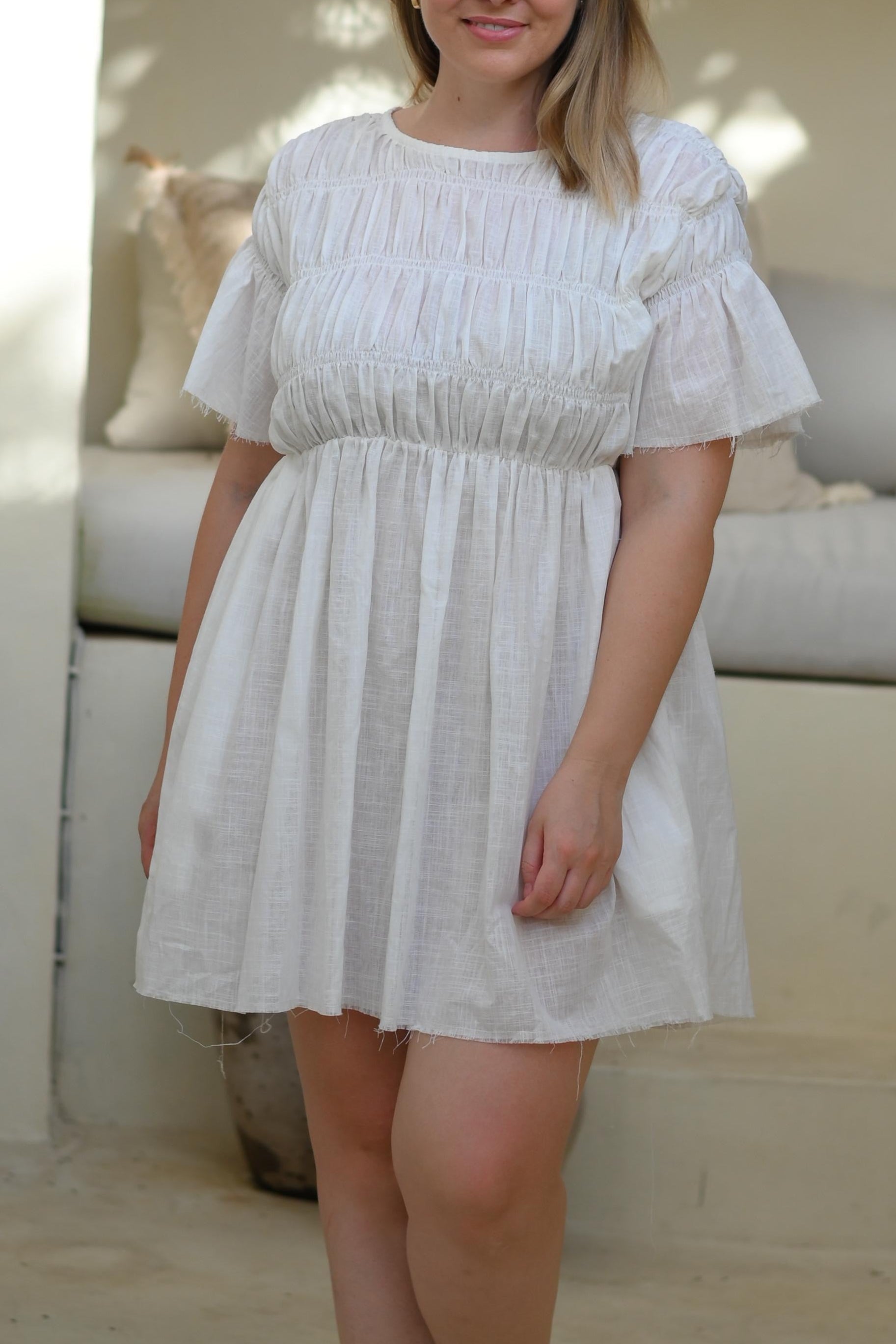 Dania Smock Mini Dress White