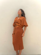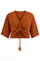 Add the Charlotte Gauze Rust Top to your wardrobe for an effortlessly chic essential made for everyday sophistication.