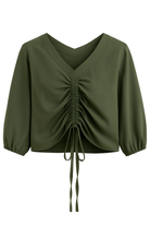 Add the Charlotte V-Neck Khaki Top to your collection for a piece that brings together comfort, versatility, and modern sophistication.