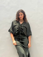 Blending the breathability of viscose with the silky finish of satin, the Charlotte Top delivers a lightweight feel with a luxe touch. Its khaki tone strikes the perfect balance between neutral and statement, pairing seamlessly with both warm and cool palettes.