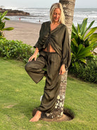 The straight leg cut offers a timeless silhouette, while the khaki tone makes it easy to style for work, weekends, or travel. Breathable, comfortable, and versatile — the Harper Pant is a wardrobe essential for the modern conscious woman.