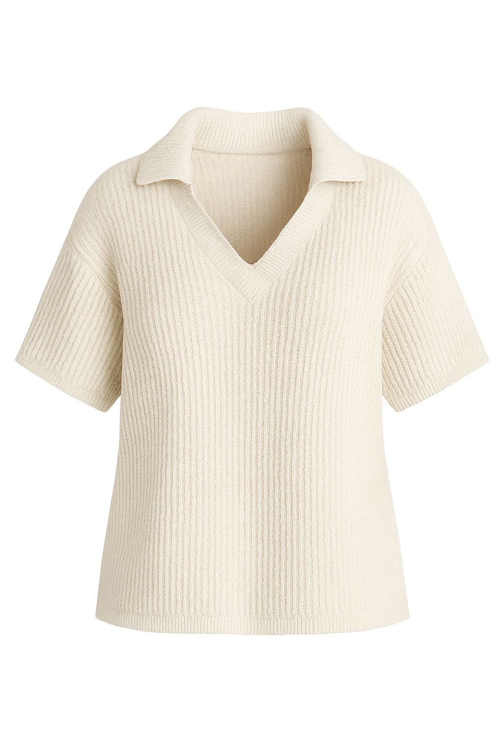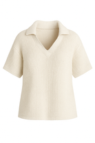 Its relaxed fit, structured collar, and modern half sleeves create a chic silhouette that transitions effortlessly from casual to refined. Lightweight yet cozy, this versatile knit is a year-round staple for layering or wearing on its own.