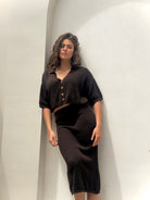 Add the Devi Crochet Skirt with Lining – Chocolate to your wardrobe for an effortlessly elegant piece that balances artisanal design with everyday versatility.