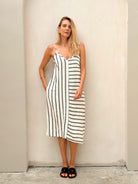 Step into effortless style with the Fanya Linen Stripe Dress! Crafted from a breezy blend of 55% linen and 45% rayon, this dress offers a soft, comfortable feel perfect for sunny days. Its charming stripe motif adds a playful touch to your wardrobe, making it ideal for casual outings or relaxed weekends. Embrace comfort and fun in one stylish package!