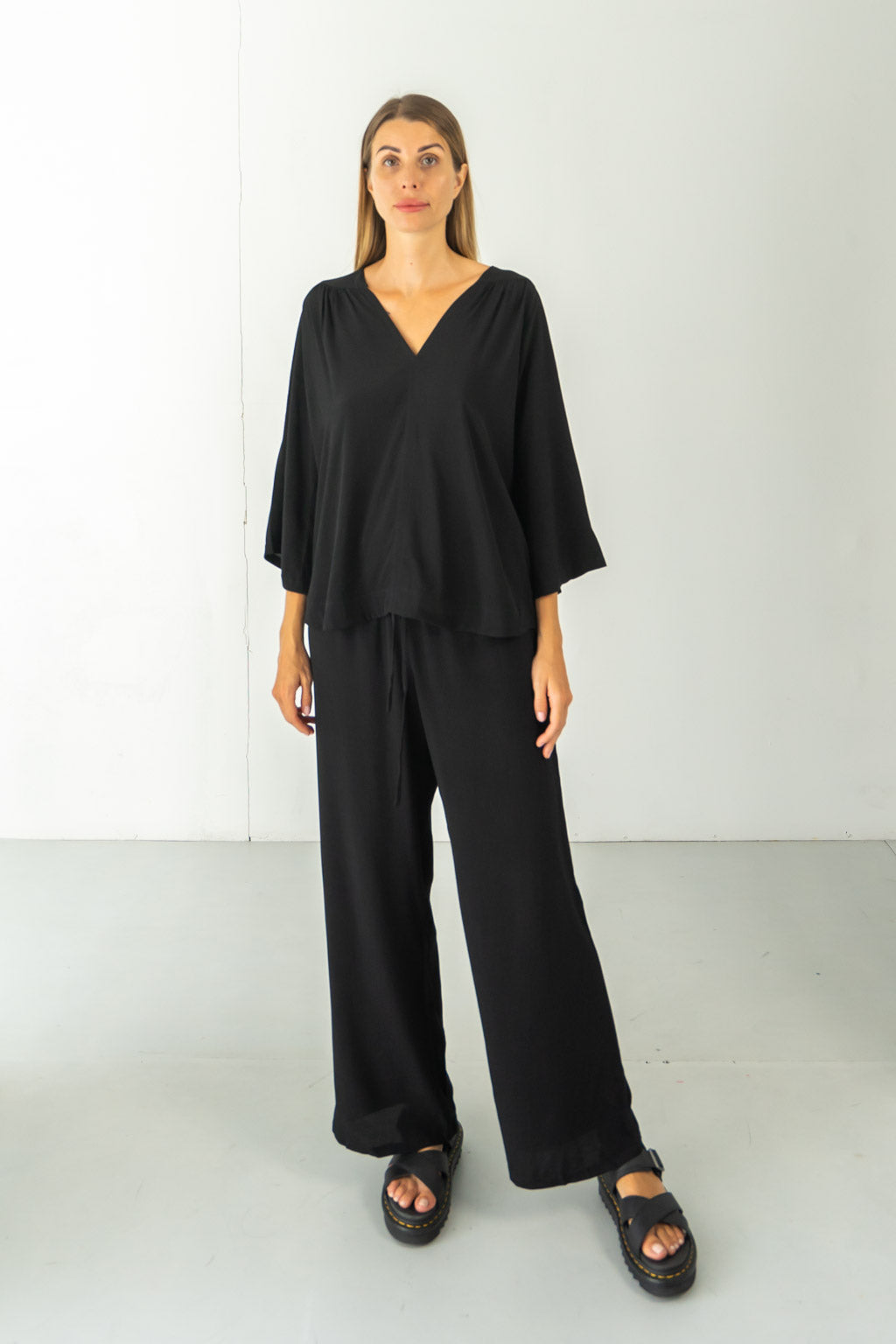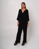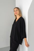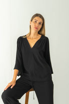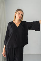 Fiona Black V Neck Blouse
