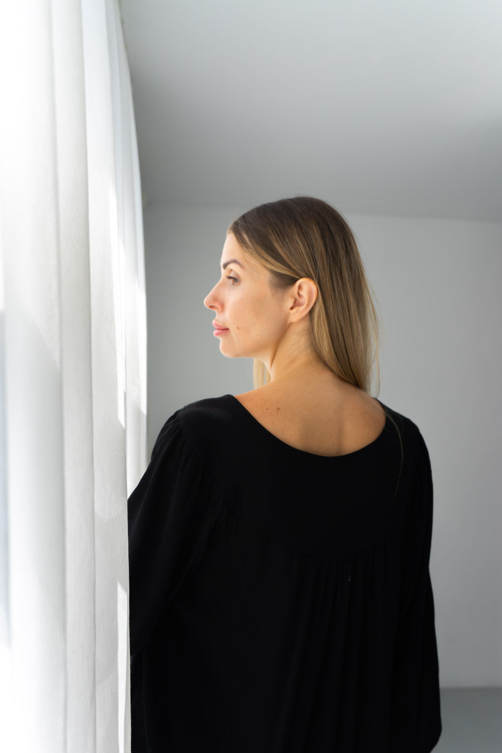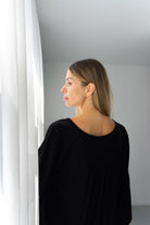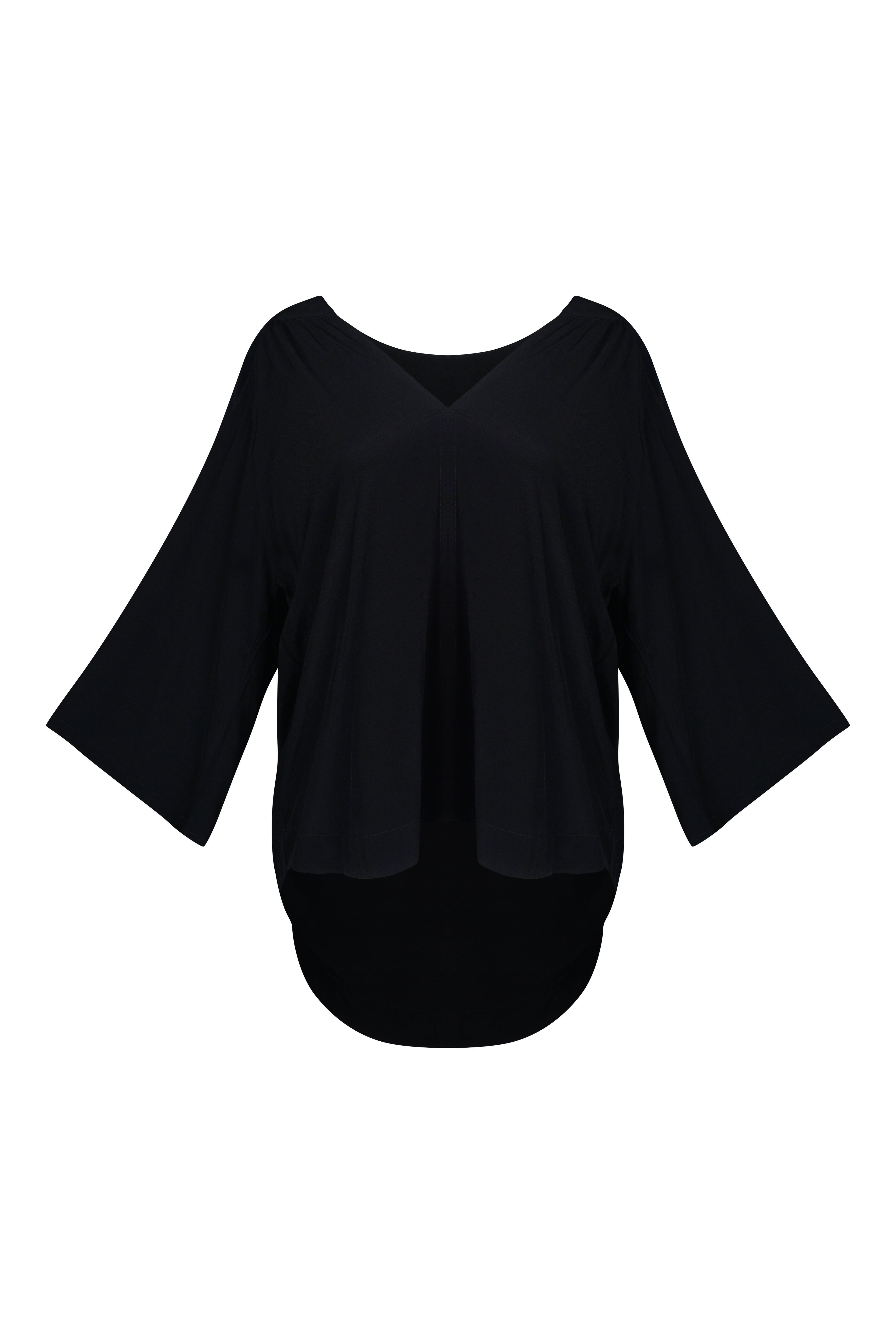 The Fiona Black V Neck Blouse will add a touch of sophistication to your wardrobe with its sleek design. Made from high quality Fujette Black material, its flattering V neck cut is perfect for any occasion. Elevate your style and feel confident in this must-have piece.