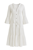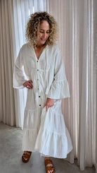 Add the Gypsy Midi White Dress to your wardrobe for a timeless cotton essential that blends bohemian ease with everyday elegance.
