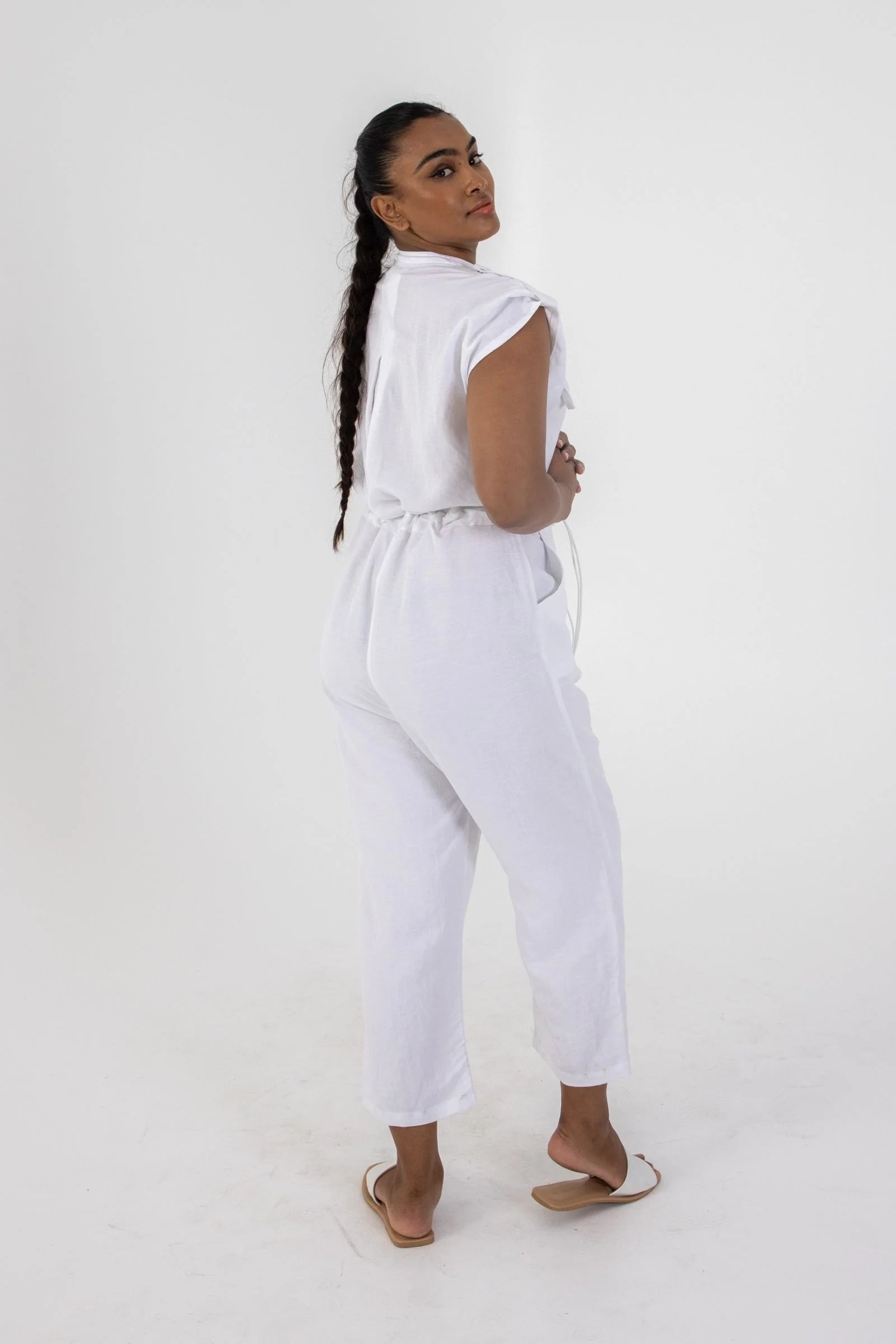 Embrace effortless style with our White Linen Jumpsuit, the perfect go-to piece for a chic yet relaxed wardrobe. Crafted from 100% linen, this lightweight jumpsuit offers unmatched comfort and breathability, making it ideal for warm-weather days.