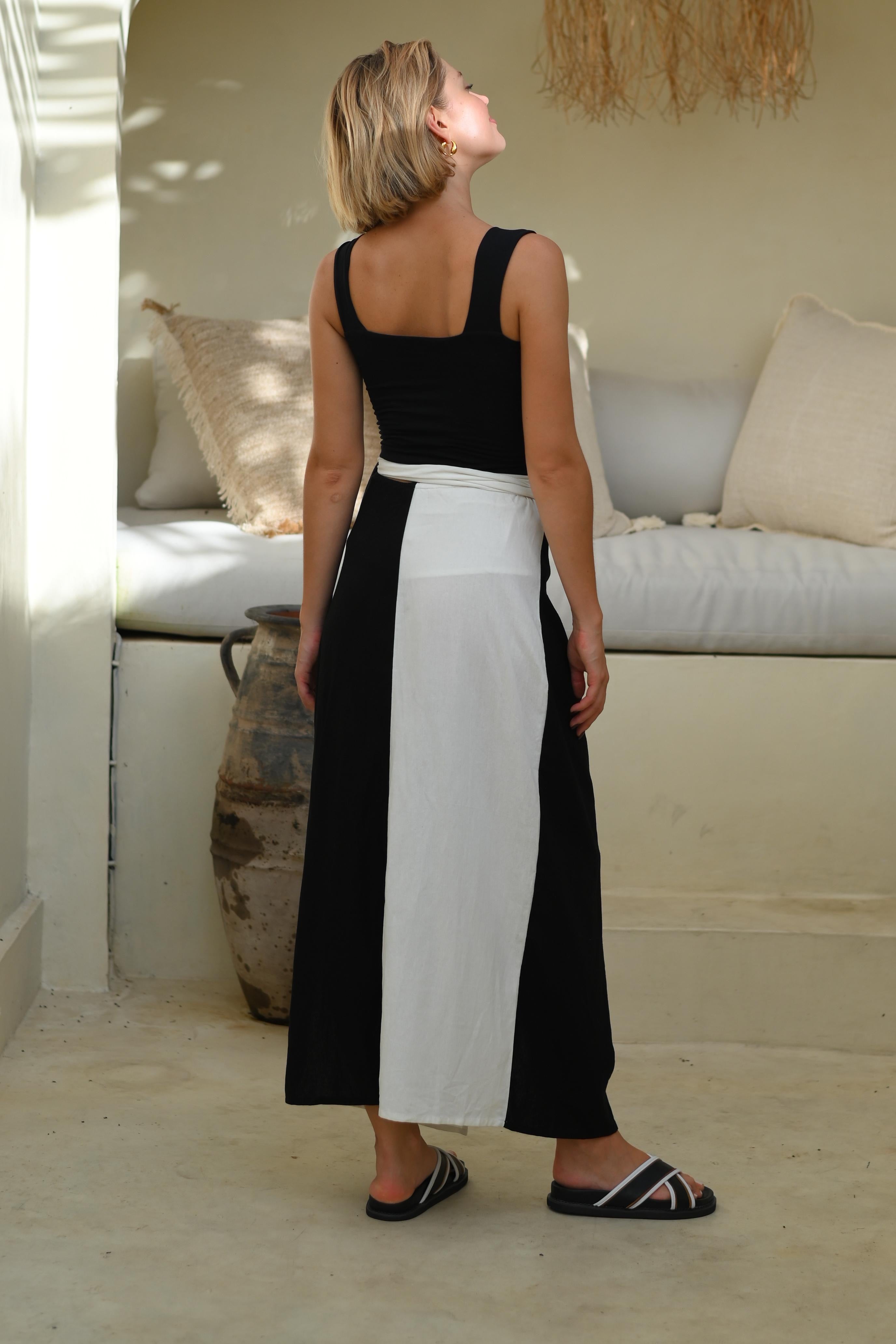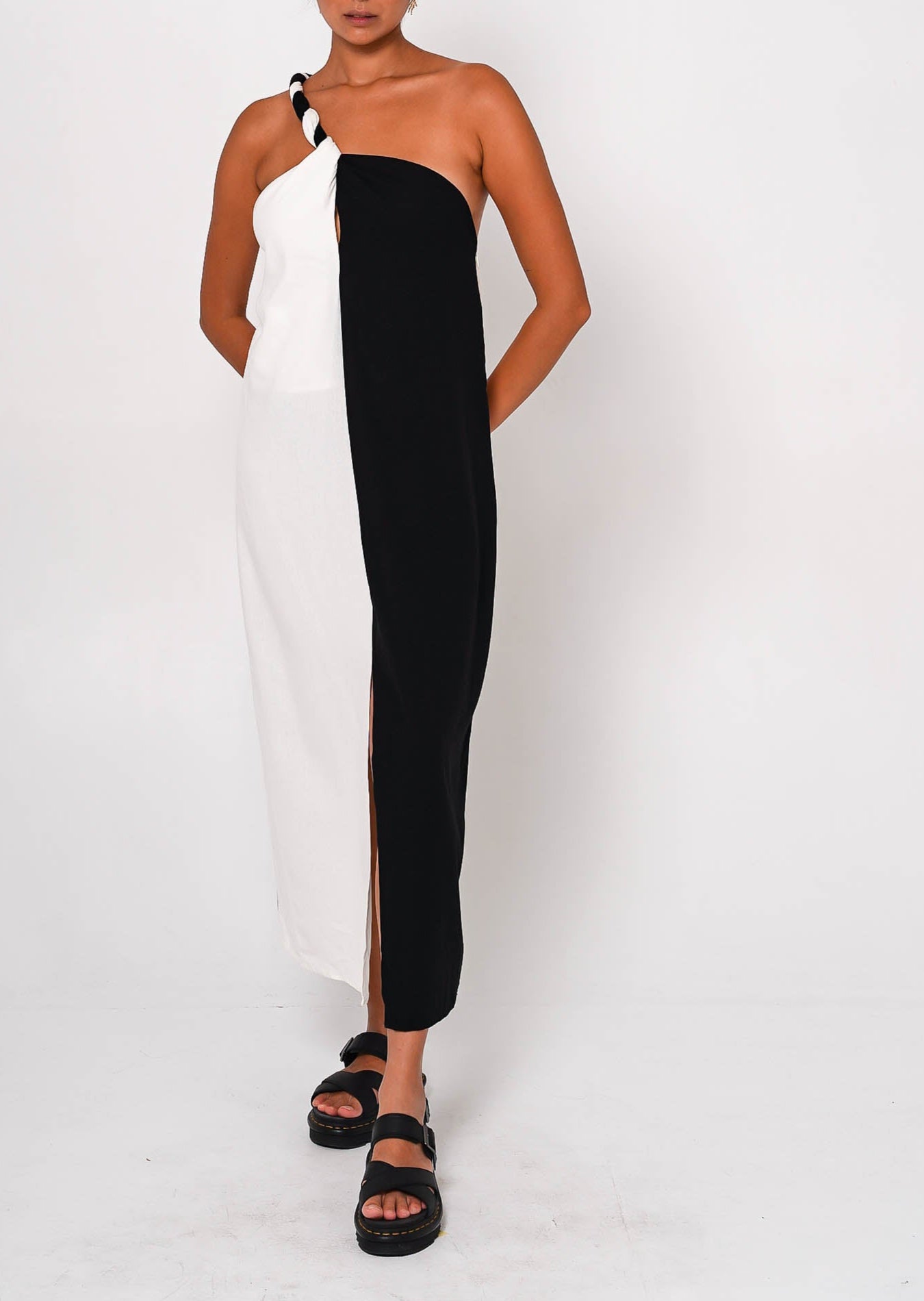 Introducing the Nyla Black & White Halter Dress. Made from high-quality linen, this halterneck dress boasts a French ginger design for a chic and sophisticated look. Stay stylish and comfortable with this must-have addition to your wardrobe. Perfect for any occasion.