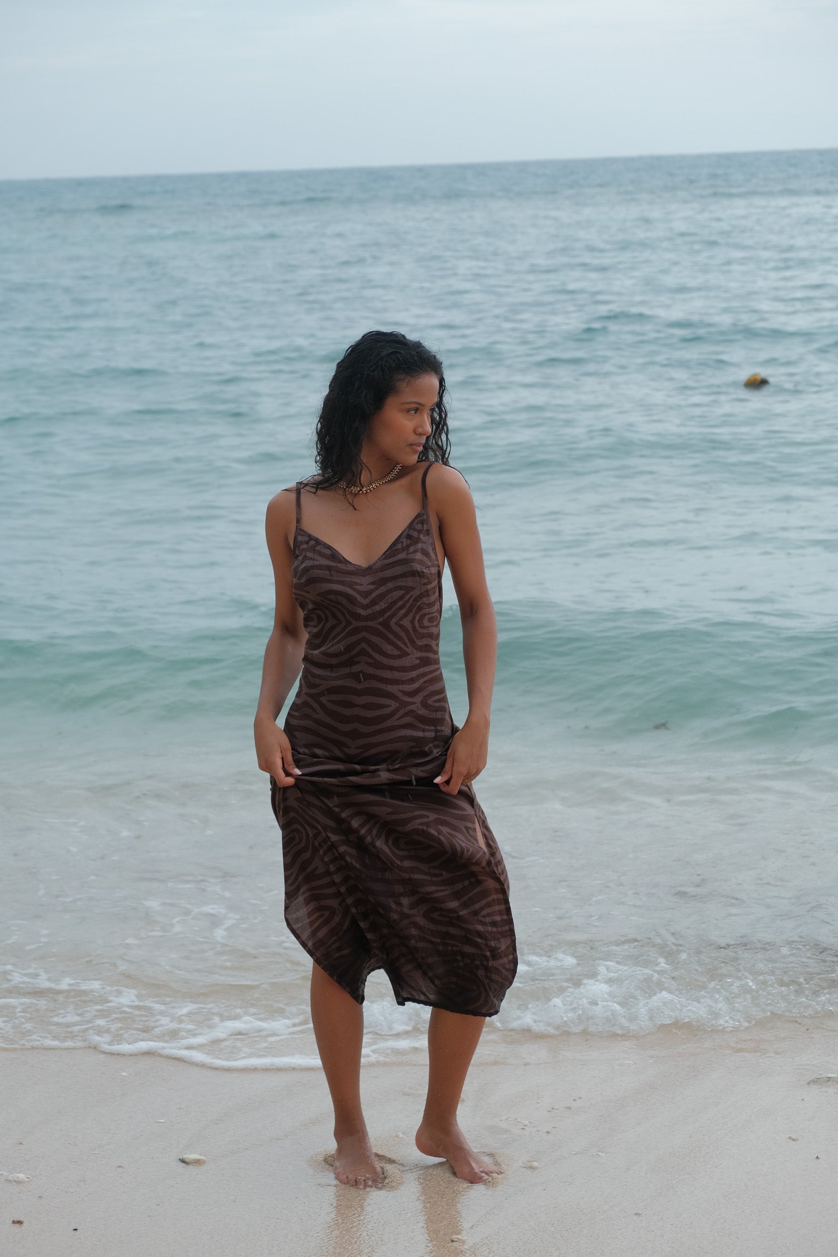 Embrace bold style with the Olivia Dress, a striking cotton piece featuring a playful geisha and zebra print in rich brown tones. This versatile dress combines artistic flair with everyday comfort, perfect for those who love making a statement. The breathable cotton fabric keeps you cool and comfortable, while the eye-catching design ensures you'll turn heads wherever you go. Whether you're dressing up for a special occasion or adding personality to your casual wardrobe, this dress is your ticket to effortless, confident style.