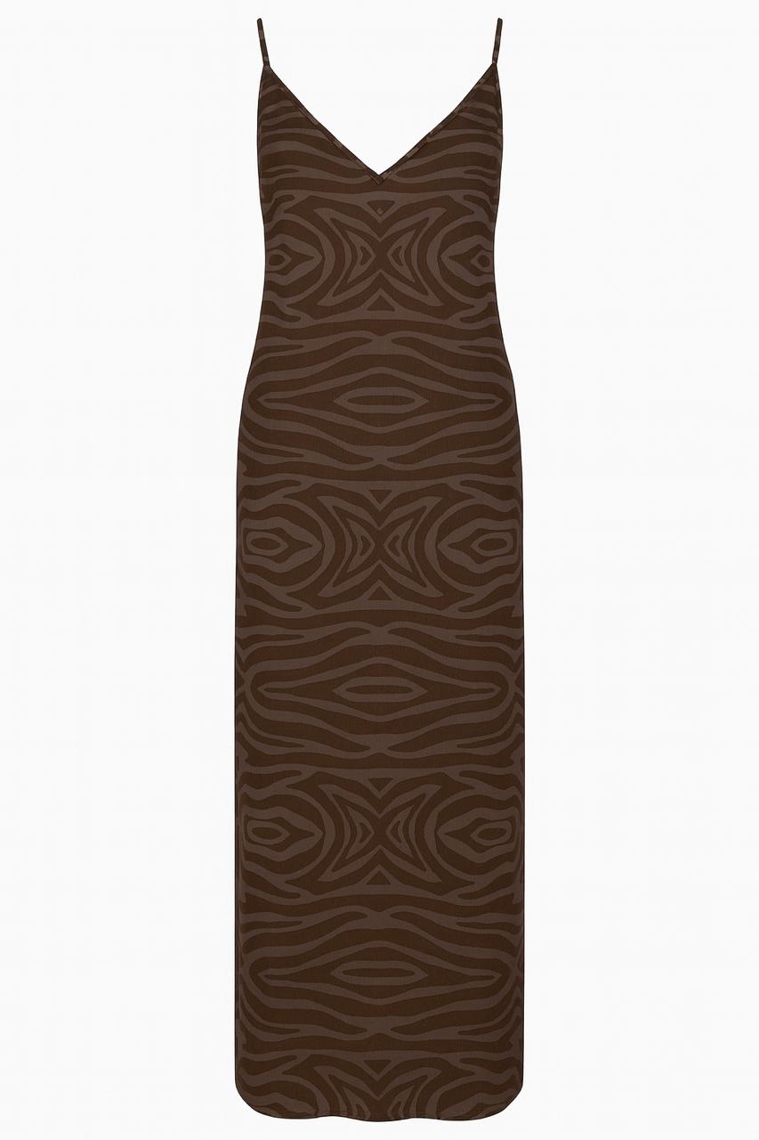 Olivia Zebra Brown Print Cotton Geisha Dress