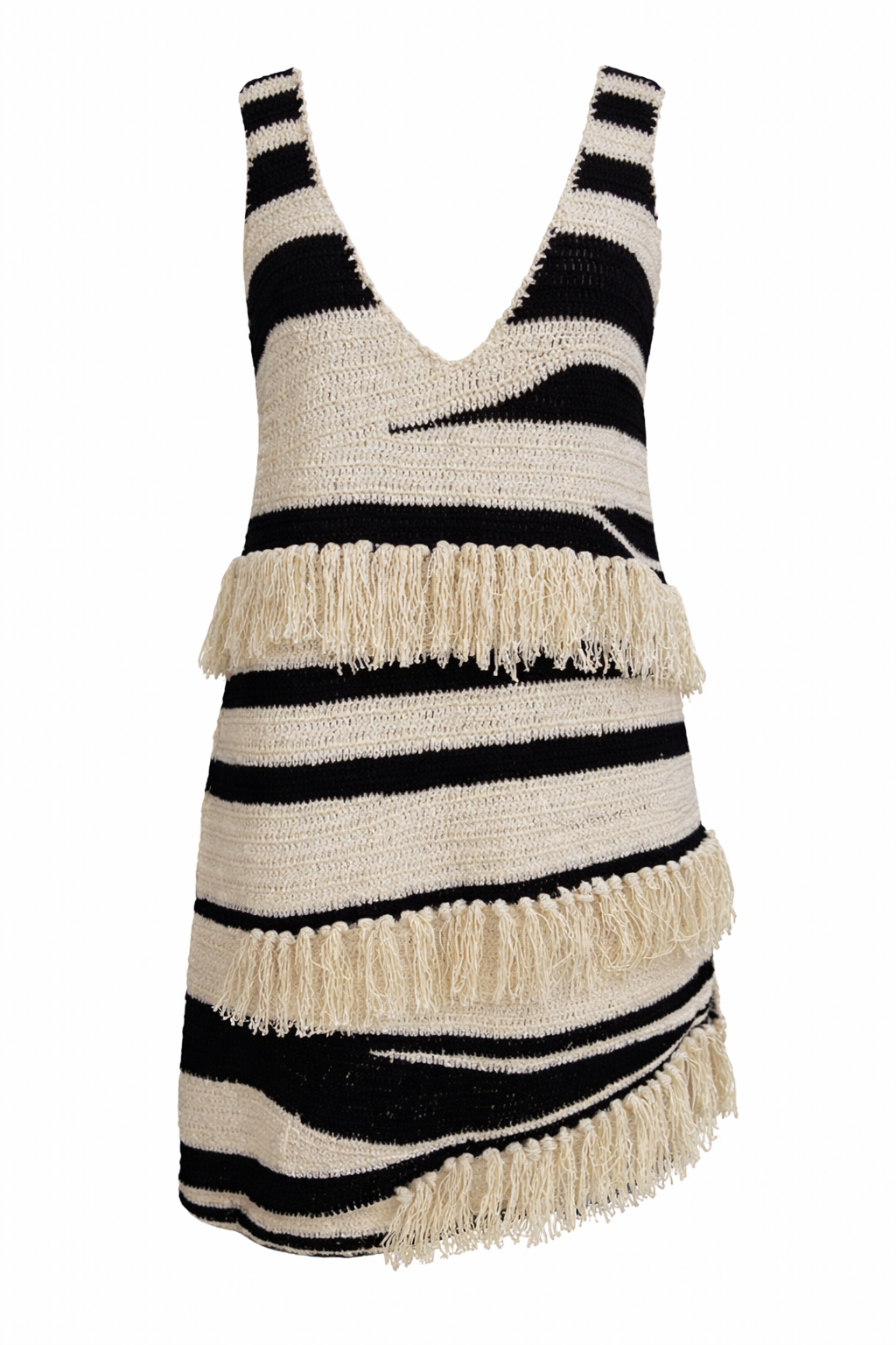 Renata Cream Black Parkit Yarn Mid Length Dress