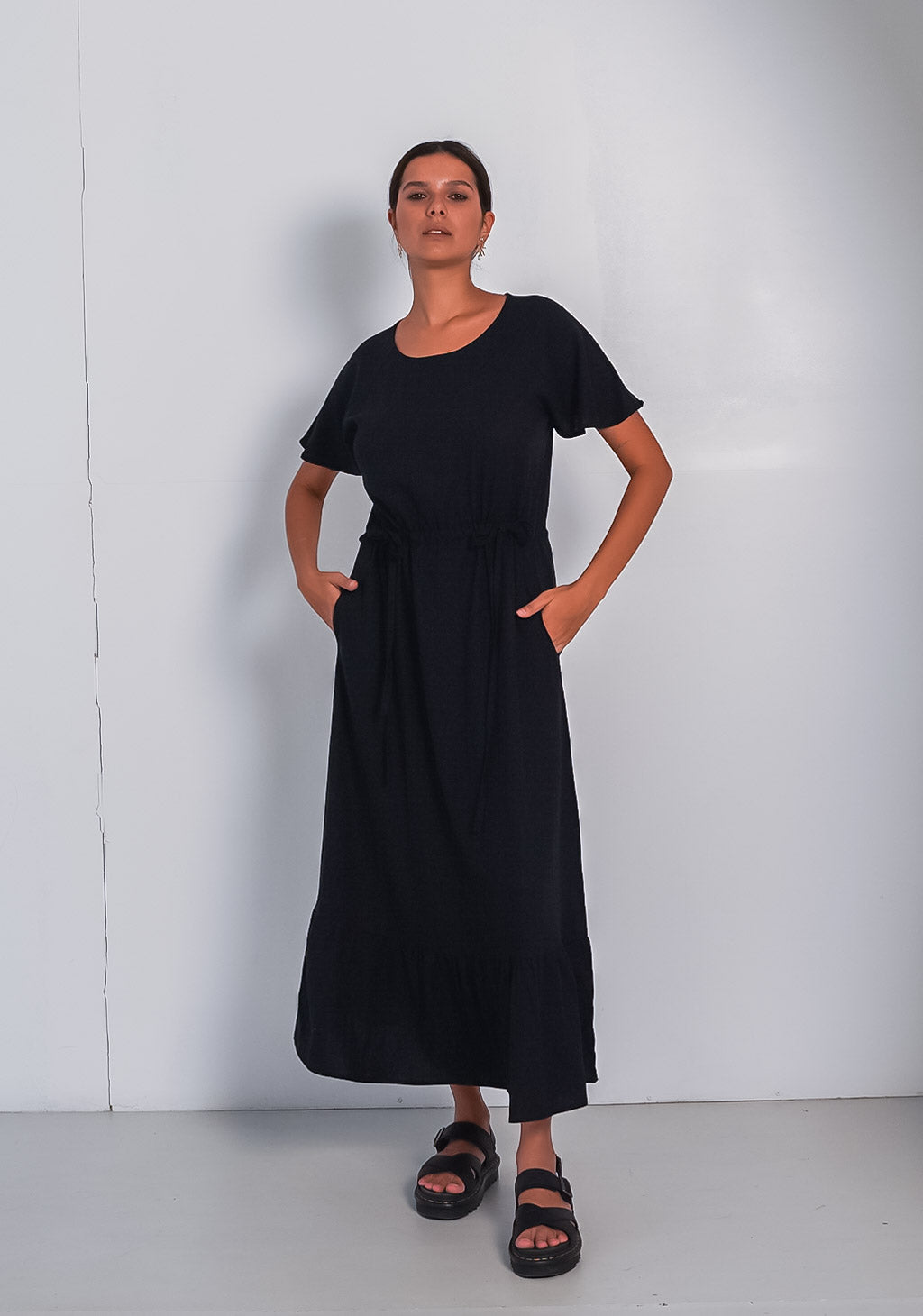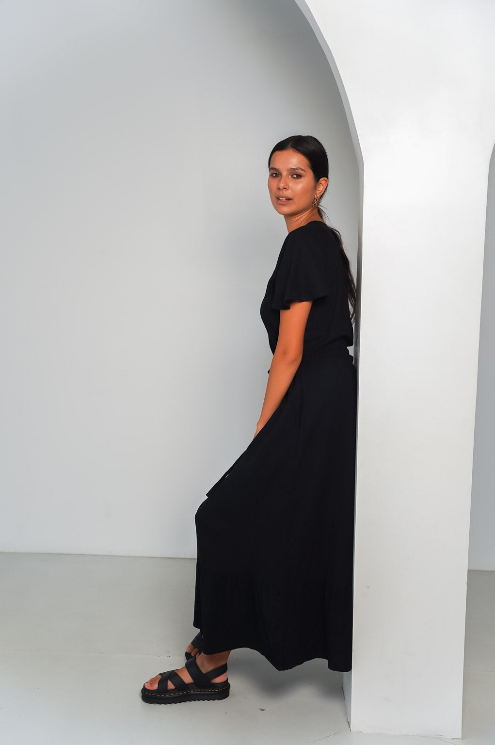 Effortlessly elegant and versatile, the Riley Black Maxi Dress features a round neck and adjustable fit for maximum comfort. Made with high-quality linen fabric, this dress is perfect for any occasion. Look and feel your best with this must-have wardrobe staple.