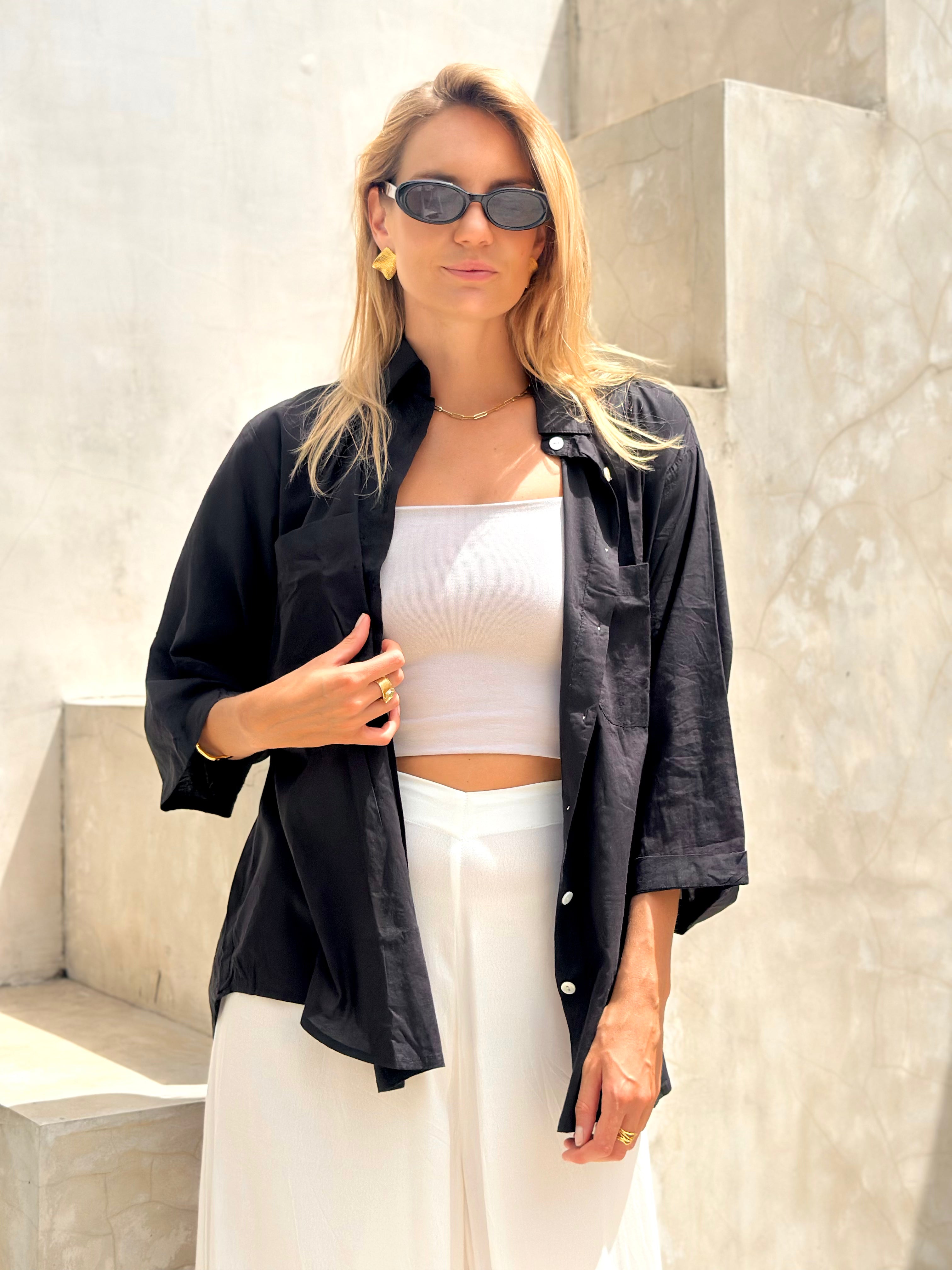 Designed with a relaxed silhouette and refined detailing, this shirt drapes beautifully and layers with ease. Whether worn buttoned up for a polished look or open over a simple top for casual styling, the Samba Shirt is a piece that adapts seamlessly to your lifestyle.