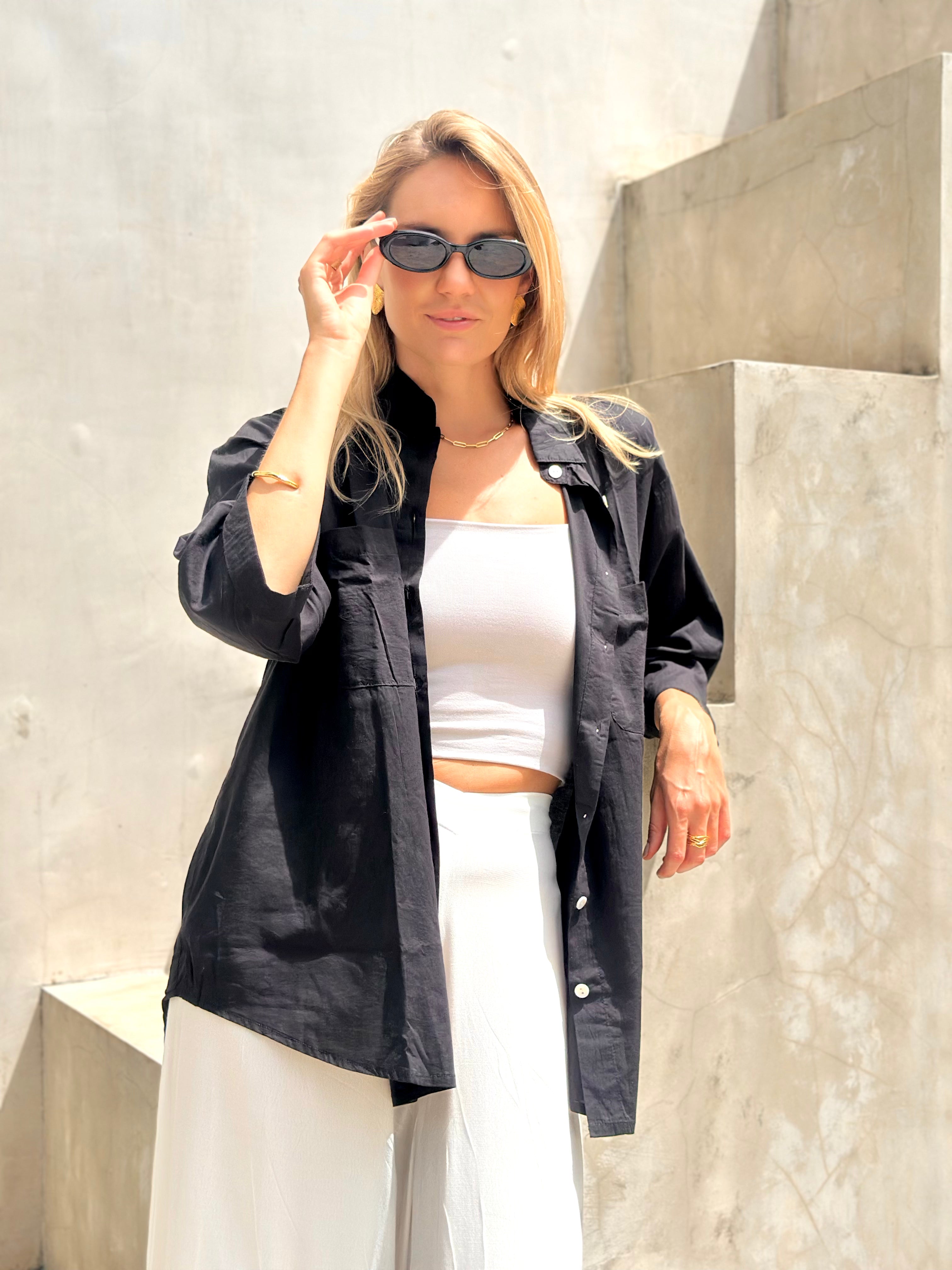 Laid-back elegance with a modern edge. The Samba Shirt in Black Cotton Lyocell offers lightweight comfort and versatile styling, making it a timeless staple for any wardrobe.