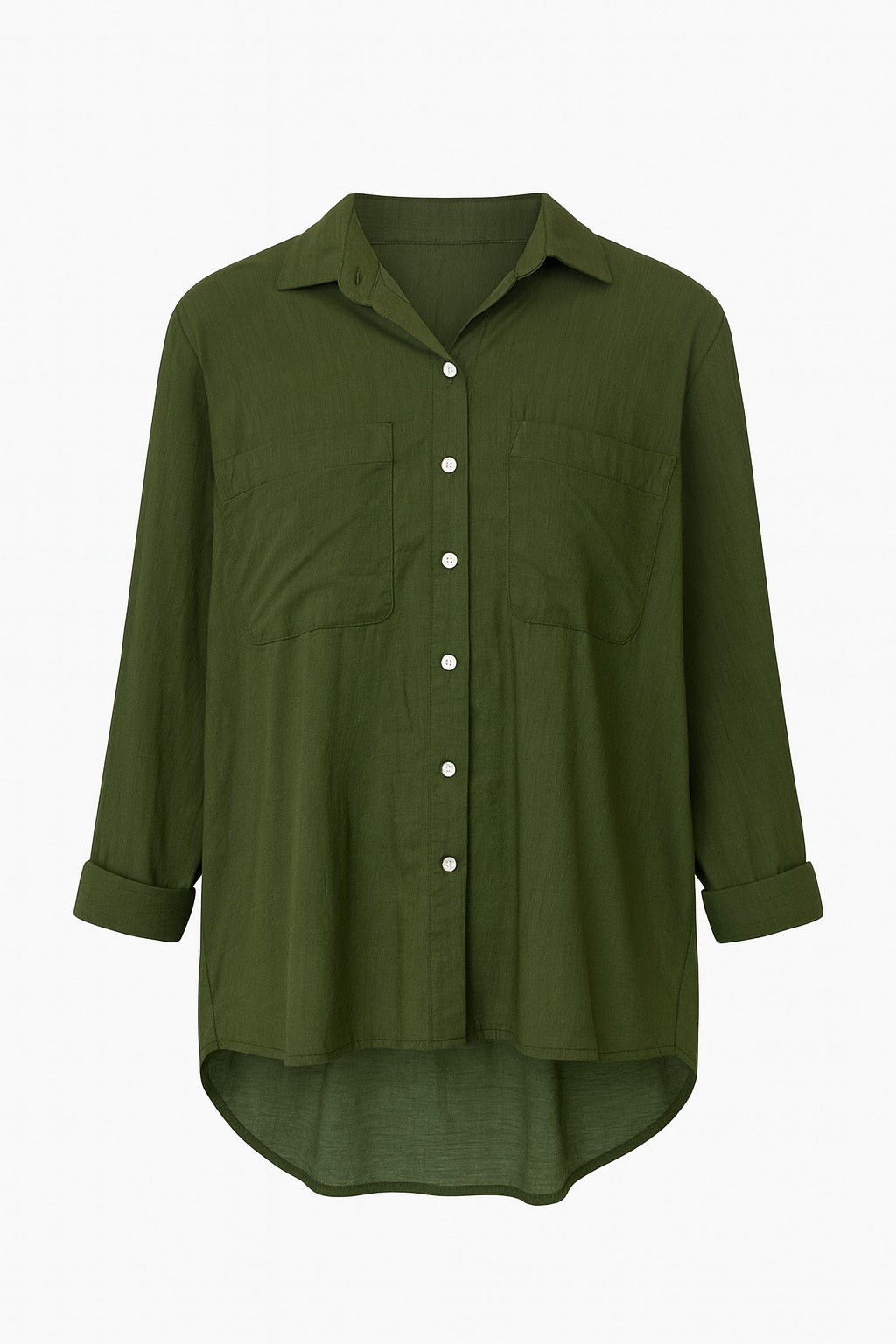 Style: Relaxed fit with soft drape and classic shirt details