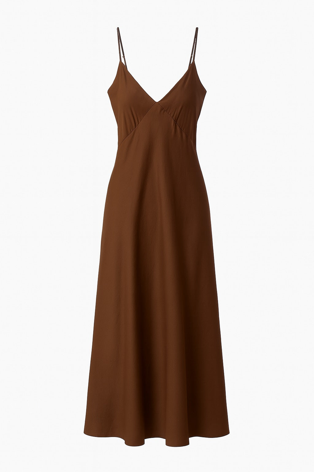 The mocha tone provides a sophisticated neutral that pairs effortlessly with both bold colors and soft pastels. With its clean lines and understated design, this dress transitions seamlessly from casual afternoons to dressed-up evenings, making it a true wardrobe multitasker.