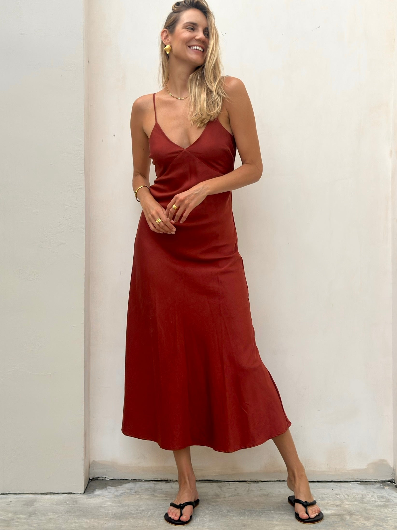 Scotty Burgundy Lyocell Bedsheet Terranova Slip Dress