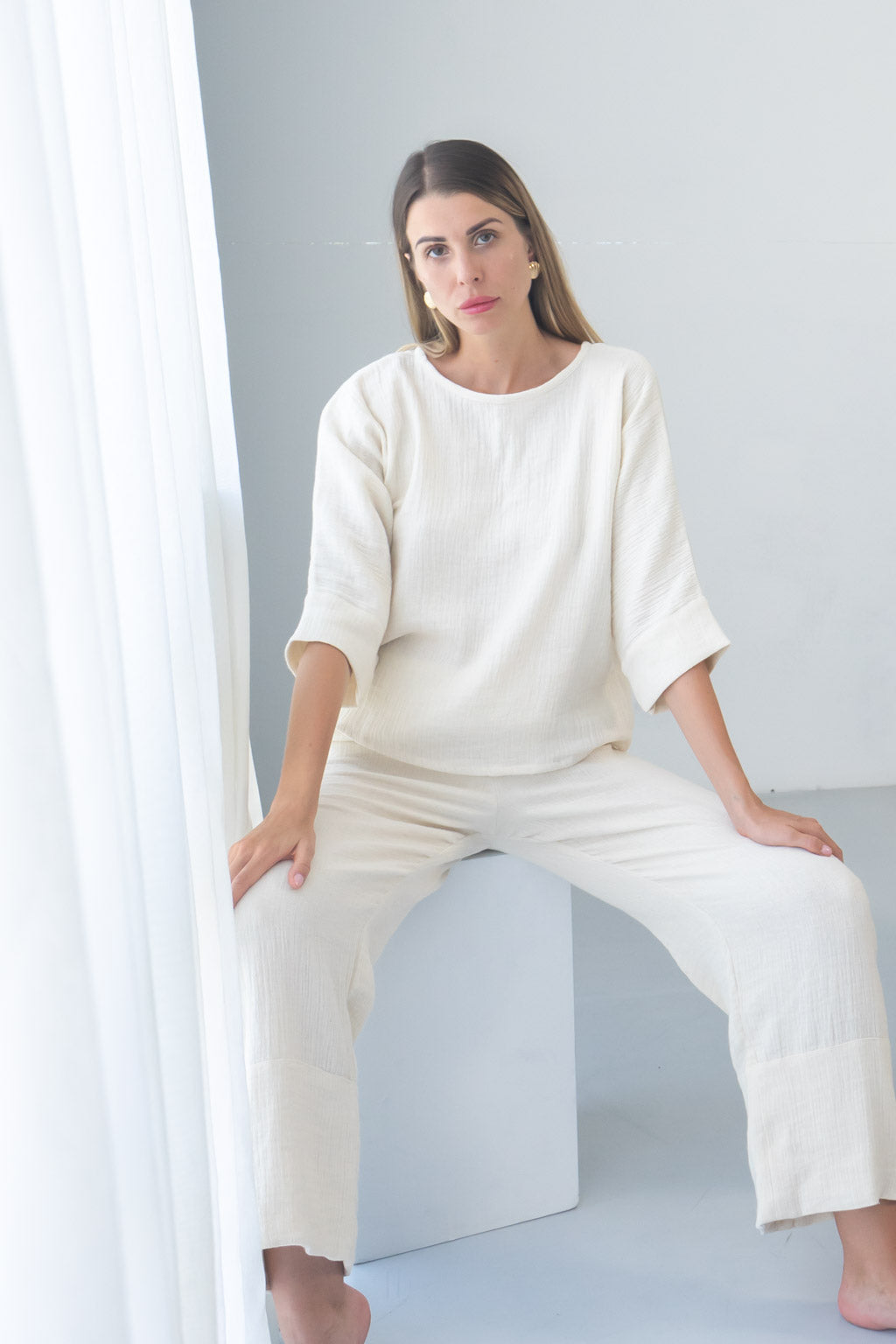 Introducing the elegant Sofia Natural 3/4 Sleeve Top. Made from 100% organic cotton, this top offers superior comfort and breathability. Perfect for any occasion, the 3/4 length sleeves provide just the right amount of coverage. Upgrade your wardrobe with this sustainable and stylish top.