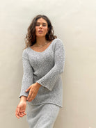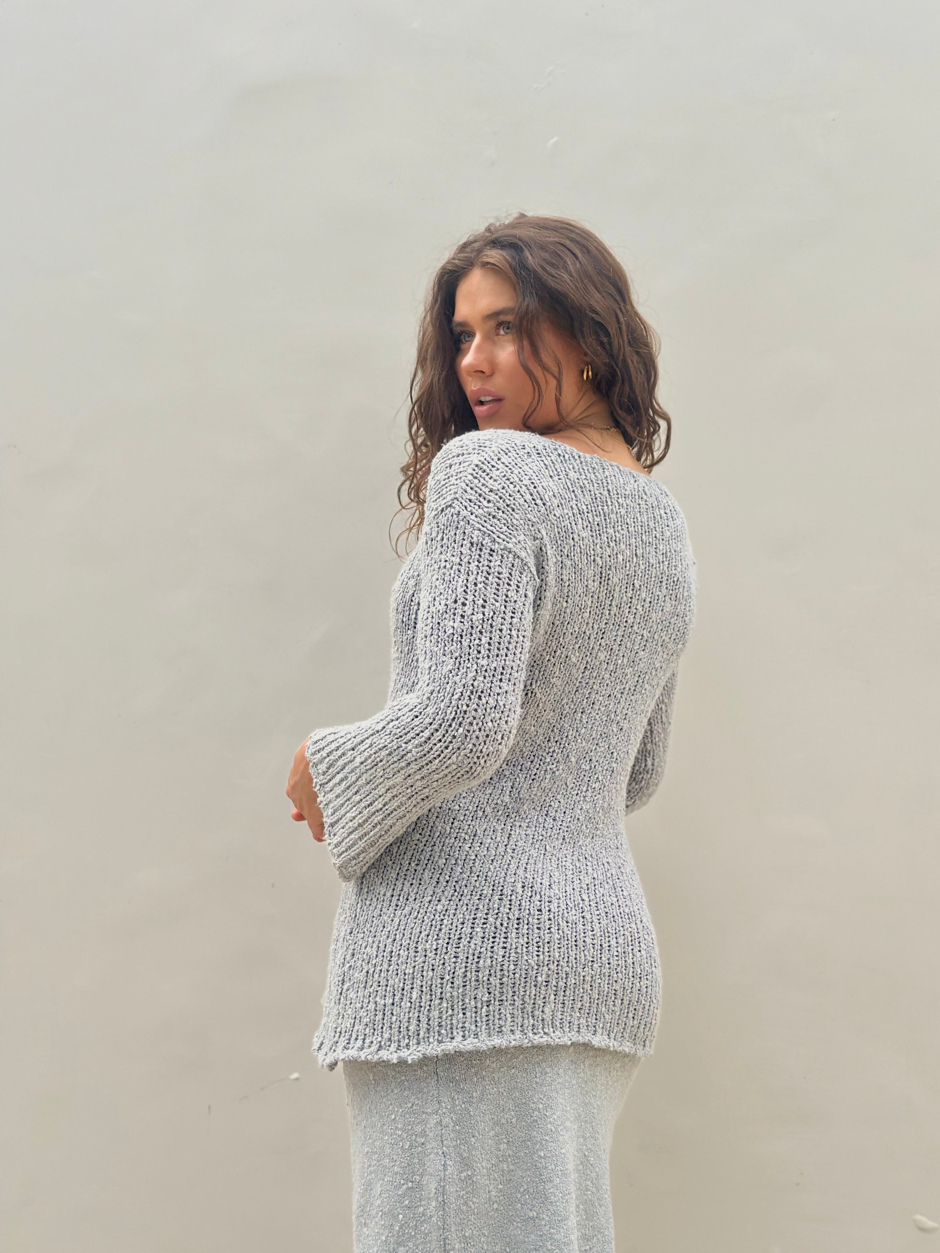 Sunday V-Neck Steel Popcorn Yarn Mix Cotton Jumper